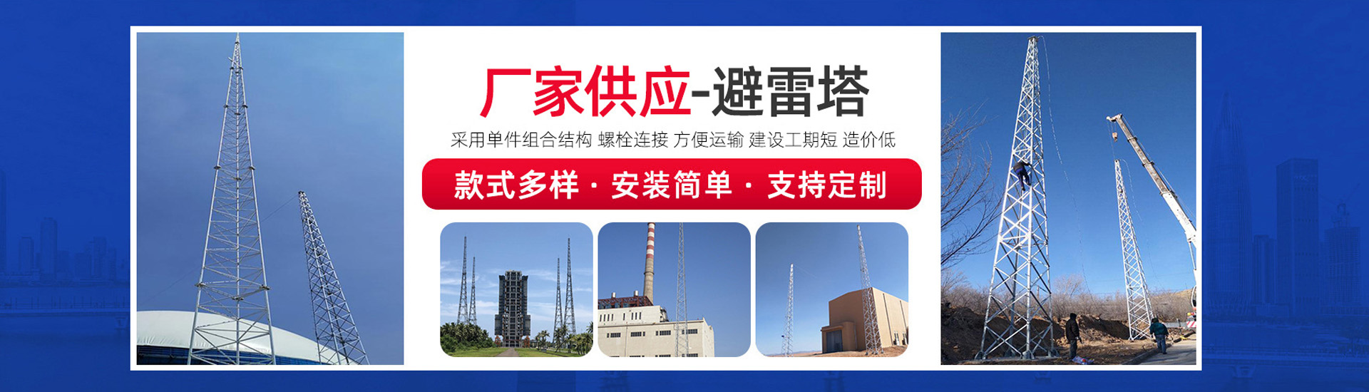 主營產(chǎn)品:廣播電視發(fā)射塔、輸電線路電力鐵塔、避雷塔、煙筒塔 、監(jiān)控塔、瞭望塔、美化天線罩、測風(fēng)塔、電力鋼構(gòu)架、仿生樹、定做熱鍍鋅異形件、一體化機(jī)房、通訊塔、投光燈塔、雷達(dá)塔、移動通信車、等